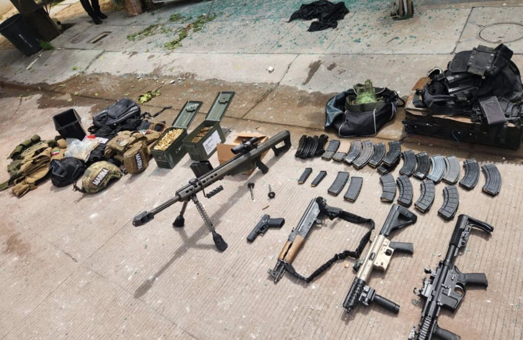 - Cofres con aproximadamente 2,360 cartuchos de 7.62, 615 de 5.56, 102 de .50, 4 de 10 mm y 16 de 9 mm