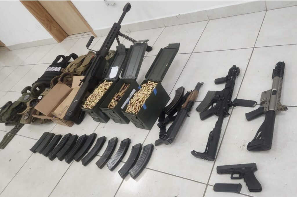 - Cofres con aproximadamente 2,360 cartuchos de 7.62, 615 de 5.56, 102 de .50, 4 de 10 mm y 16 de 9 mm