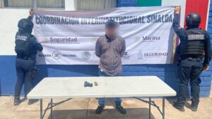 Culiacán, Sinaloa.– Durante un despliegue preventivo en la colonia Adolfo López Mateos, un civil armado fue detenido por elementos del Grupo Interinstitucional integrado por el
