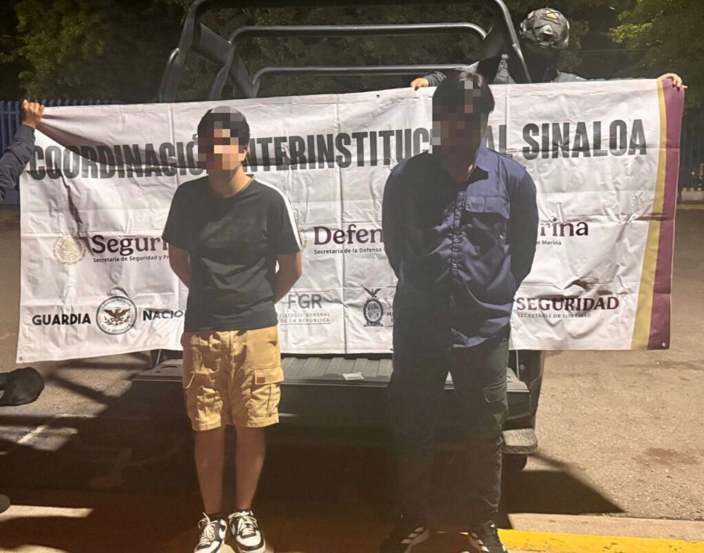 Culiacán, Sinaloa.– Dos jóvenes fueron detenidos por elementos del Grupo Interinstitucional en el fraccionamiento Villas del Río, luego de ser sorprendidos con cigarros de marihuana.