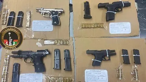Elementos de la Policía Estatal de la Secretaría de Seguridad y Protección Ciudadana de Campeche realizaron la detención, luego de confirmar que la camioneta contaba con reporte de robo y que los acompañantes portaban armas de fuego.