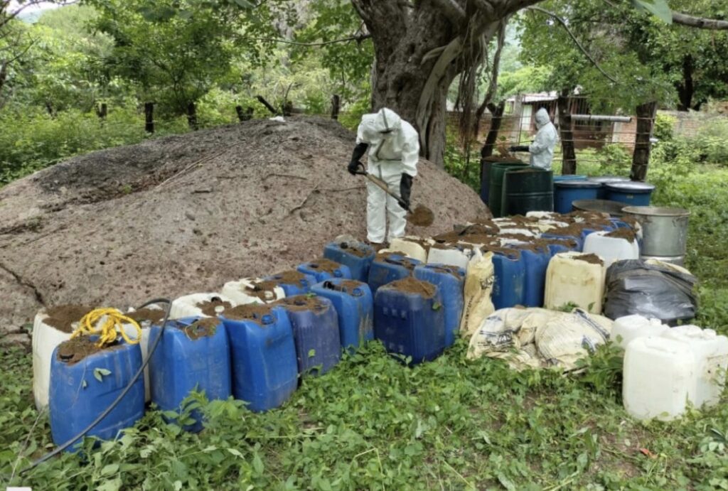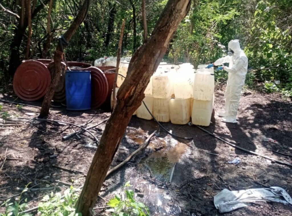 Autoridades localizaron tres áreas clandestinas con miles de litros de precursores químicos y utensilios para su elaboración