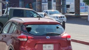 Hombre sufre asalto armado en plaza Ley del Valle; disparan contra su vehículo y le roban dinero