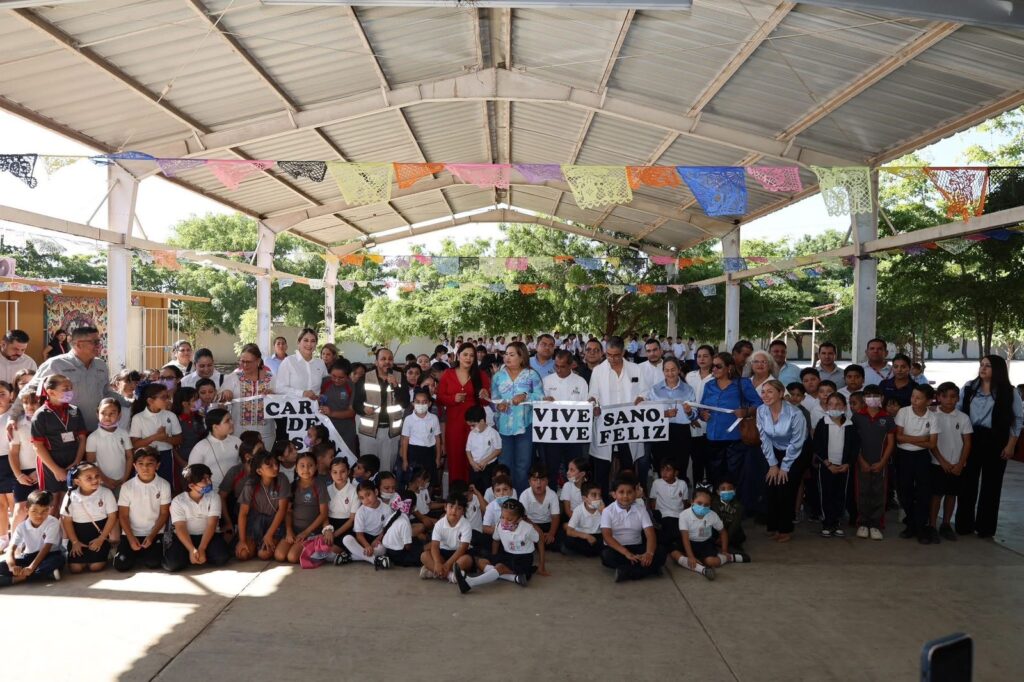 La Cruz, Elota, Sin.– Con el propósito de impulsar una niñez más sana y consciente del cuidado personal, dio inicio en la Escuela Primaria Vicente Escobar Padilla la Caravana de Salud del programa “Vive Sano, Vive Feliz”, que recorrerá las escuelas primarias del municipio, tanto federales, estatales, CONAFE y PRONIM. La iniciativa beneficiará a más de 6 mil alumnas y alumnos de 51 planteles educativos.